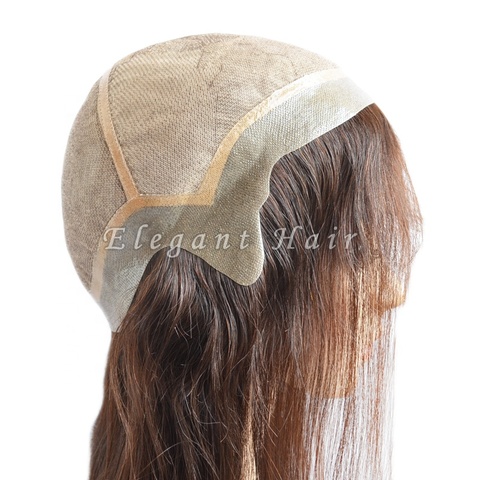 Tupé completo de Mujeres de cabello humano con base de piel fina de PU con precio de fábrica