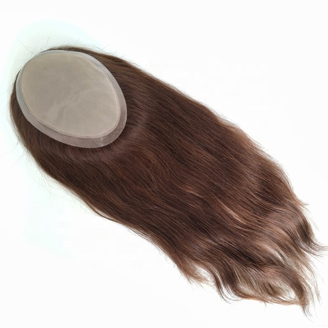 Pelucas de encaje suizo para mujer, Base superior de seda frontal, cabello humano virgen con perímetro de PU, venta al por mayor