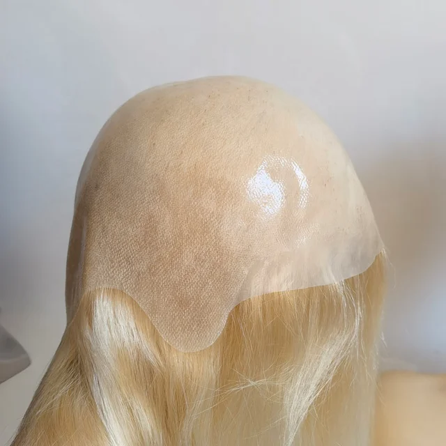 Long Blonde Transparent Full Thin Skin PU Poly Base Real Original Virgin Human Hair Women Full Cap Lace Wig